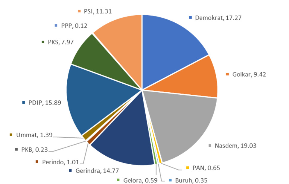 Meanwhile, other political parties, including new ones, were not much discussed in the conversation: the two old parties, Golkar and PKS, accounted for about 9% and 8%, respectively. The rest, including all new parties, are only about 1%.