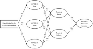 H1: Digital media use to obtain COVID-19 information will be positively related to (a) COVID-19 fear, (b) COVID-19 anger, and (c) COVID-19 worry.